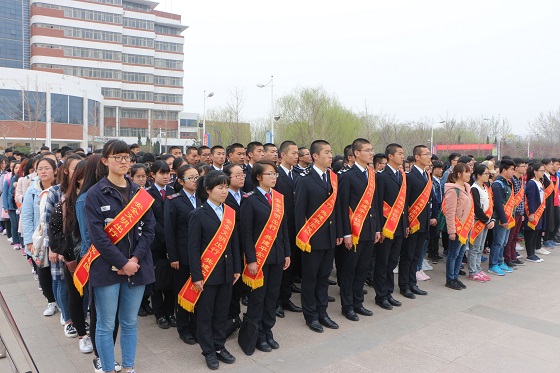 3月20日上午,bat365官方网站50余名学生在二餐广场参加了由保卫处举办的“安全文明出行,共建平安校园”2017交通安全宣传教育周开幕式活动。