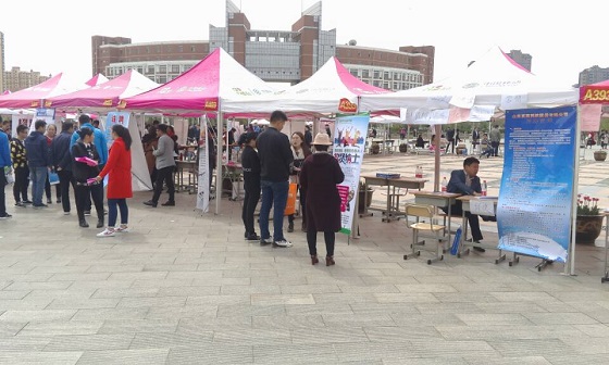 4月9日上午,50多家企业在学校水上广场举办了2017年滨州市“青春扶贫,送岗位进校园”大学生专场招聘会,bat365官方网站组织该院应届毕业生参加。