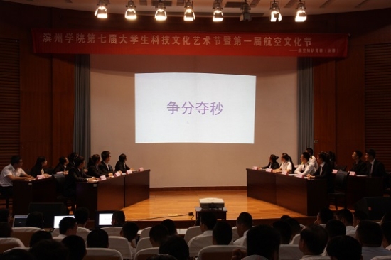 本次主题为“营造校园航空文化,成就学子航空梦想”的航空知识竞赛作为极具航空特色的文化活动,吸引了学校大批热爱航空知识的青年学子来到现场观看。本次决赛分为个人赛―“初露锋芒”、“争分夺秒”,团队赛―“团队一站到底”两个环节,比赛既能有效考察参赛学生对航空知识的了解程度,又能检验团队的默契与协作能力。在团队比赛中,现场比赛气氛激烈,航空工程学院与飞行学院两支代表队发挥异常出色,将比赛带入高潮。比赛中穿插的互动环节,使得场内原本激烈的比赛气氛轻松活泼了许多。经过紧张激烈的竞答,最终,飞行学院代表队凭借稳定的发挥和出色的应变能力突出重围,荣获特等奖,航空工程学院代表队荣获一等奖,bat365官方网站代表队、化学工程学院代表队荣获二等奖,机电工程学院、教师教育学院、建筑工程学院、外语系荣获三等奖。