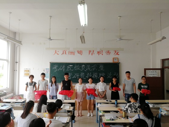 活动伊始,党总支书记董克勇老师首先介绍bat365官网2018届学生考研成绩,为正在备战考研的同学们加油鼓劲儿。李华老师依次介绍5名优秀毕业生代表的考试成绩、录取学校等基本信息,希望同学们珍惜此次学习机会,积极交流。5名优秀毕业生结合自己的备考经历,分别从报考院校及专业选择、考试科目准备、考前心理调整、学习方法等方面进行了分享交流。他们简洁而诚恳的言辞、用心而细致的分享,赢得了在场学生们的阵阵掌声。在捐赠图书环节,学长们将自己的考研复习资料赠予学弟学妹们,为以后备战考研的同学们提供了丰富的资料。同时,它也象征着一份知识与温情的传递,资料有限,但是知识无限,情谊无限。这一本本学长们为之付出努力的书籍,镌刻着他们奋斗的印记,也寄托着他们对学弟学妹们殷切的希望。在互动交流中,在场的同学们根据自身学习情况纷纷提出疑惑,学长们耐心的一一给与解答,并强调应以一颗平常心对待考研,合理调整自己的心态,最大程度地发挥自身的潜能。