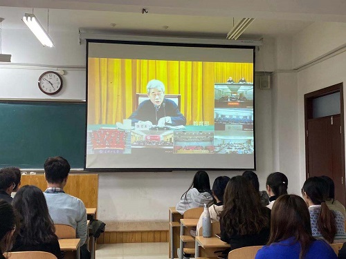 接山东省教育厅通知,为推动学生加强对国家时政的学习,贯彻落实习近平总书记指示精神,bat365官方网站于11月12日15:00在工科楼1-109会议室及其它教室组织部分师生收看了党的十九届五中全会精神中央宣讲团报告视频直播。
