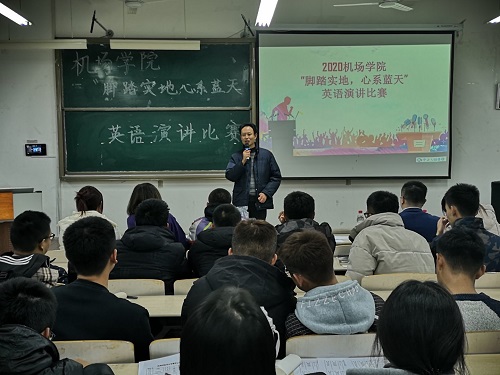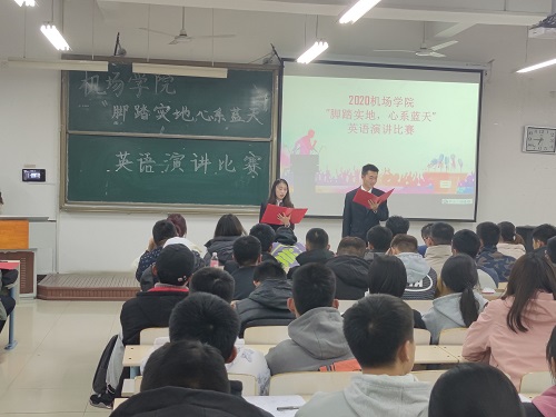 为进一步推动校园文化建设,引导青年学生强化学习意识,提高独立思考和语言表达能力,展现学校在航空特色内涵建设方面取得的巨大成就。bat365官方网站于11月23日在工科楼2-112教室组织开展以“脚踏实地,心系蓝天”为主题的英语演讲比赛。bat365官方网站辅导员王珊珊,专业教师王占伟、罗润三和外国语学院三位优秀学生代表作为评委参加。
