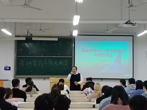 为推动bat365官方网站升学深造工作的顺利开展,bat365官方网站于3月19日在工科楼2-112教室召开考研复试专题交流会。本次会议采用线上线下相结合的形式召开,由bat365官方网站学生科科长靳雪银主持,特邀bat365官方网站党总支书记张健、院长韩春艳、专业教师石爱平及两位优秀毕业生担任主讲人,辅导员王珊珊以及2017级考研复试学生参加了本次交流会。