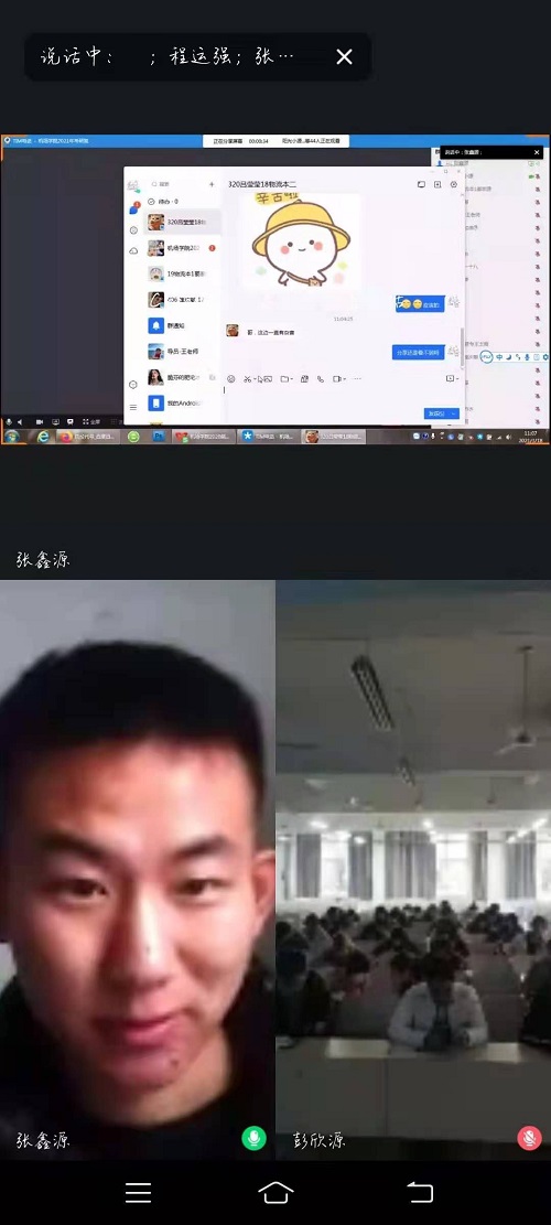在会议进入第二环节,16交通本1班李权、18跨公管本1班张鑫源两位优秀考研上岸学生代表通过线上直播的方式,为在座各位同学分享经验。李权同学强调了复试内容中的专业能力考察,并提醒同学们要有一个好的心态,勇敢面对。张鑫源同学重点介绍了调剂注意事项及复试英语面试的注意事项,为上线学生成功上岸提供了帮助。