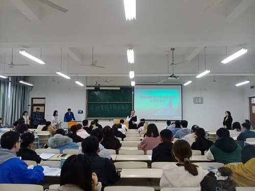 会议伊始,张健书记首先对各位同学目前所取得的成绩表示了肯定,鼓励大家积极应对复试或调剂。接着,他对近年来本科毕业生考研形势进行分析,并结合学生考研初试情况,向各位同学提出了殷切期望,希望同学们保持良好心态,沉着应战。并建议各位考研学子在择校时开阔眼界,鼓励大家选择祖国西部地区质量较好的学校,将个人发展与西部大开发战略融合在一起,将实现自我价值与实现中华民族伟大复兴的中国梦融合在一起,奉献青春力量。韩春艳院长结合自身工作和学习经历,详细地分析和讲解了考研复试的流程、面试技巧以及复试常见问题,提出“知己知彼,百战不殆”的观点。叮嘱同学复试的时间控制、面试礼仪、表述方式、问题回答等方面做好充分准备,争取更多主动性。石爱平老师提醒同学们在面试过程中,要向面试老师展现积极向上的精神面貌,并且强调在专业知识方面要做好充足准备,以更好地回答面试中的问题。在接下来的提问答疑环节,面对同学们提出的问题,老师们热心详细地回答了同学们关于考研的各类疑虑。