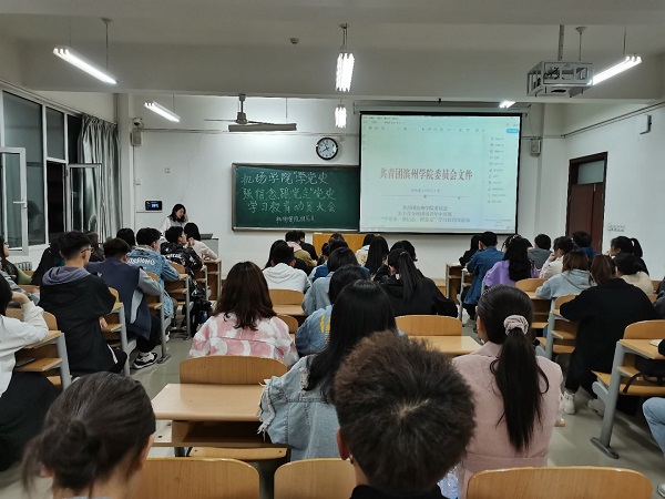 为响应滨州学院校团委有关党史学习教育号召,认真贯彻落实和开展相关教育工作。bat365官方网站于3月28日在8教508教室,开展了“学党史、强信念、跟党走”党史学习教育动员大会。本次由bat365官方网站学生团总支书记靳雪银同志主持,非毕业班全体团干部参加。