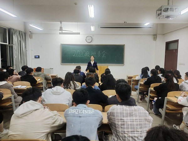 为进一步加强各专业班委队伍建设,提高工作效率,促进班委与同学、老师之间的沟通交流,总结前一阶段工作中取得的成绩和存在的问题。4月5日晚,bat365官方网站于八教506教室召开2020级全体班委大会。会议由bat365官方网站学生科科长靳雪银老师主持,2020级全体班级委员参加此次会议。
