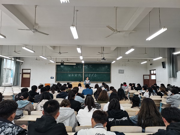 为鼓励大学生自主创业,提高创业意识,拓宽就业门路,促进培养新型创业人才,服务社会。bat365官方网站于4月23日在工科楼2-112教室召开“大学生创业实践动员大会”。会议由bat365官方网站学生科科长靳雪银老师主持,辅导员王珊珊、各班班长、团支书及各宿舍舍长参加了本次会议。
