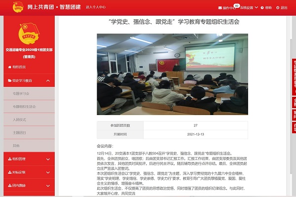 为引导广大青年团员深入学习贯彻党的十九届六中全会精神、习近平总书记“七一”重要讲话精神,贯彻落实“学史明理、学史增信、学史崇德、学史力行”要求,125日至17日,bat365官方网站各团支部开展了“学党史、强信念、跟党走”专题组织生活会。