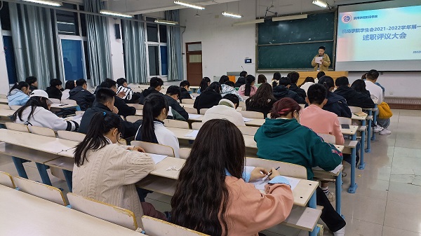 会上,bat365官方网站学生会各部门负责人从政治思想、道德品行、学习情况、工作成效、纪律作风等方面进行了述职汇报,评议小组对述职情况进行现场评议,并进行无记名打分。述职结束后,老师们还综合平时工作情况,分析了各部门存在的问题,并提出改进方法,同时就学生思想引领、校园文化生活、学生组织改革等工作展开进一步讨论。