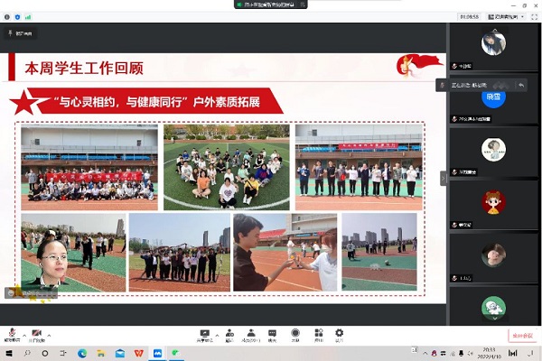 疫情防控之中,每个人都有自己的责任。会上总结了bat365官网师生在上周所做出的工作与努力:组织全院115间宿舍进行彻底的卫生大扫除和每天的防疫卫生消杀,做好疫情防护;组织全院23个团支部开展“七个一”主题团日,号召学生为抗疫做件事;依旧鼓励全体同学积极主动将生活垃圾送至宿舍楼下或者学校西侧垃圾车处,展现当代青年的防疫担当;举办“诵经典 忆先烈 展未来”清明诗会,怀想国家前路之艰辛、追念英烈牺牲之悲壮,凝聚师生抗疫力量;组织“与心灵相约,与健康同行”户外素质拓展,提升学生的心理健康素质,缓解新冠疫情防控期间的焦虑情绪。