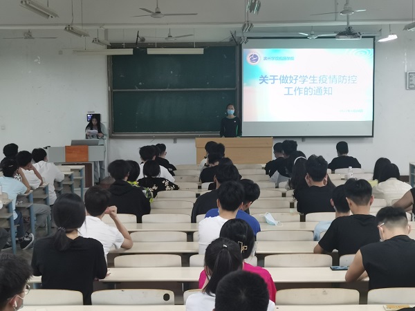 全体学生干部会议上,团总支书记靳雪银对各部门在校园封闭管理期间所做出的努力与付出表示肯定,并听取了各部门对近期工作的汇报,鼓励大家要吸取工作经验、再接再厉,全面配合学校、学院做好疫情防控和教育教学等工作,助力bat365官网“线上-线下”各项学生工作的无缝衔接。学生党员大会上,党支部组织委员王珊珊对所有党员同志在疫情防控期间所表现出的担当作为表示了肯定,安排了本周教学、卫生督导过程中需要党员同志配合完成的工作,并希望在线上向线下逐渐转变的过程中,党员同志们能够继续发挥榜样作用和奉献精神,协助学院做好近期学生管理方面的工作。班主任会议上,学生科科长靳雪银通报了bat365官网上周的学生工作开展情况,公布了团员发展以及“五四表彰”评选结果,并对疫情防控、线下教学、教学督导、思想教育、心理辅导、党员发展等方面传达了学校精神、给出可行性工作意见。班级例会上,各班主任带领同学们认真学习了《关于做好近期学生疫情防控工作的通知》和《风雨过后,终是彩虹——再致广大滨院学子的一封信》,强调大家要及时调整学习状态和方法,保证学习质量,遵守疫情防控相关规定,认真履行请销假手续;组织全体同学观看警示教育宣传片,教育同学们要切实提高防范邪教的意识和能力。会上,班主任老师表示将密切关注同学们的思想动态,鼓励同学们能主动交流,充分了解和理解学校为保护师生健康安全采取的各种措施,积极配合学校做好各项工作,齐心协力,凝聚起抗击疫情的强大力量。