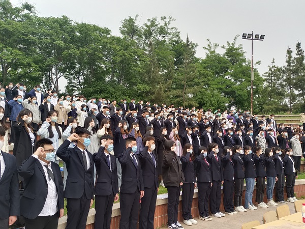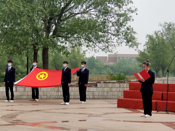 团歌嘹亮,青春激昂。5月10日下午4时,bat365官方网站在水上广场为2名新团员举行入团仪式,bat365官方网站团总支书记靳雪银、各年级辅导员及2020级、2021级全体学生到场参加。
