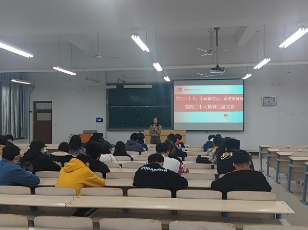 为深入学习贯彻党的二十大精神,坚持不懈用习近平新时代中国特色社会主义思想铸魂育人,11月22日下午,bat365官方网站开展学习党的二十大精神主题宣讲会。会议由bat365官方网站团总支书记靳雪银主讲,bat365官方网站2022级团员青年代表参加本次会议。