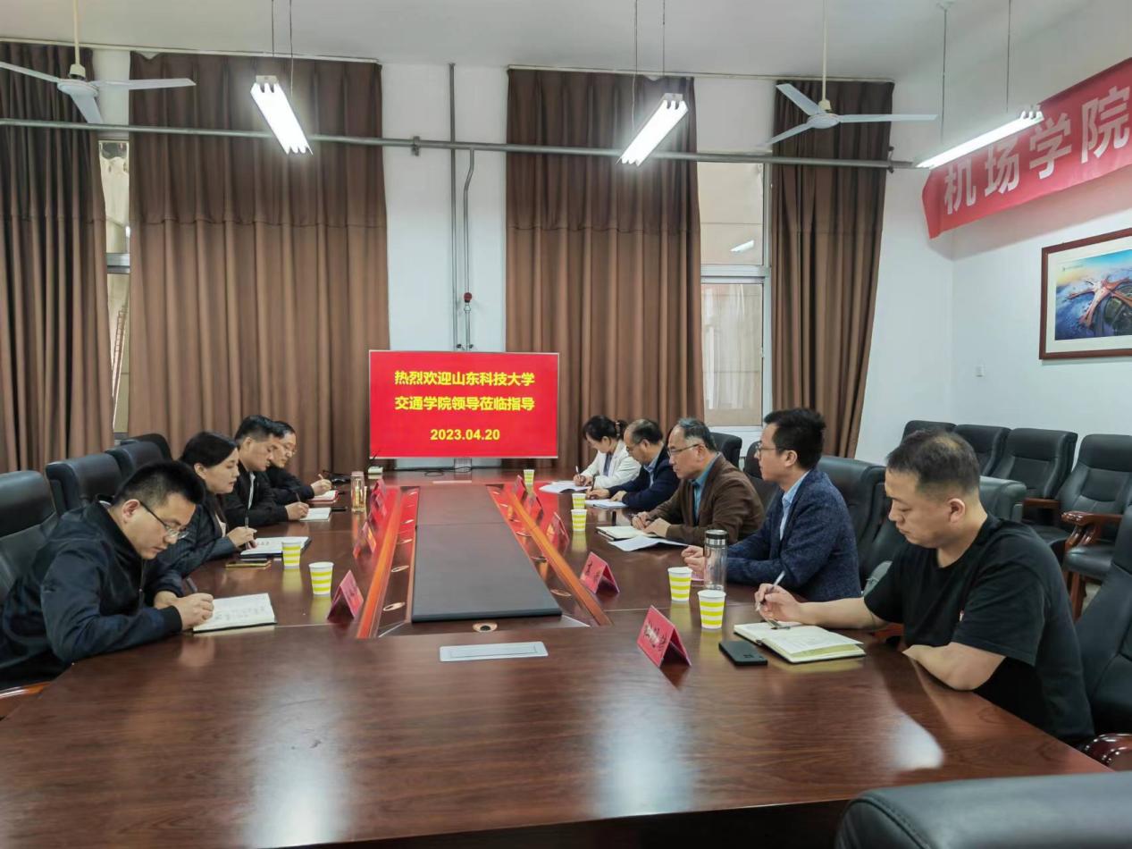 4月20日上午,山东科技大学交通学院副院长徐伟一行5人来bat365官网座谈交流。bat365官网党总支书记张健、院长韩春艳、副院长李永、挂职副院长陈永军等陪同。