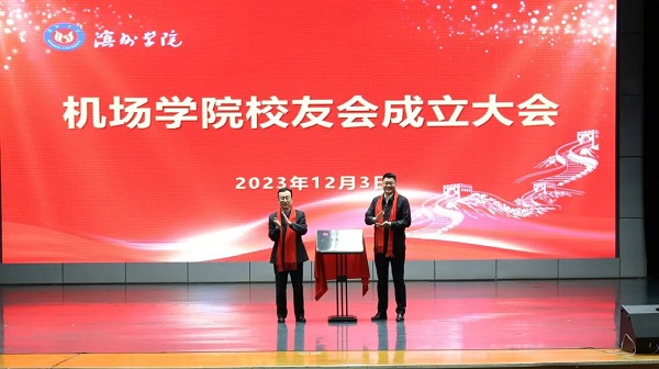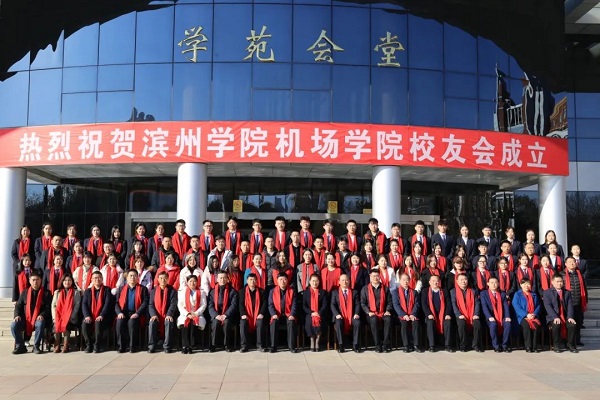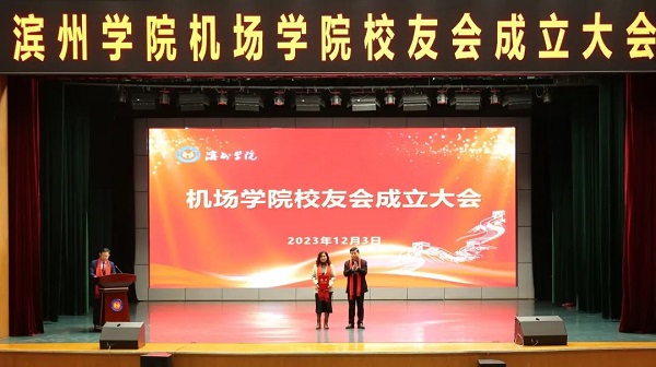 滨州大高机场有限公司董事长、总经理韩清喜致贺词,与林晓金为bat365官方网站校友会揭牌。