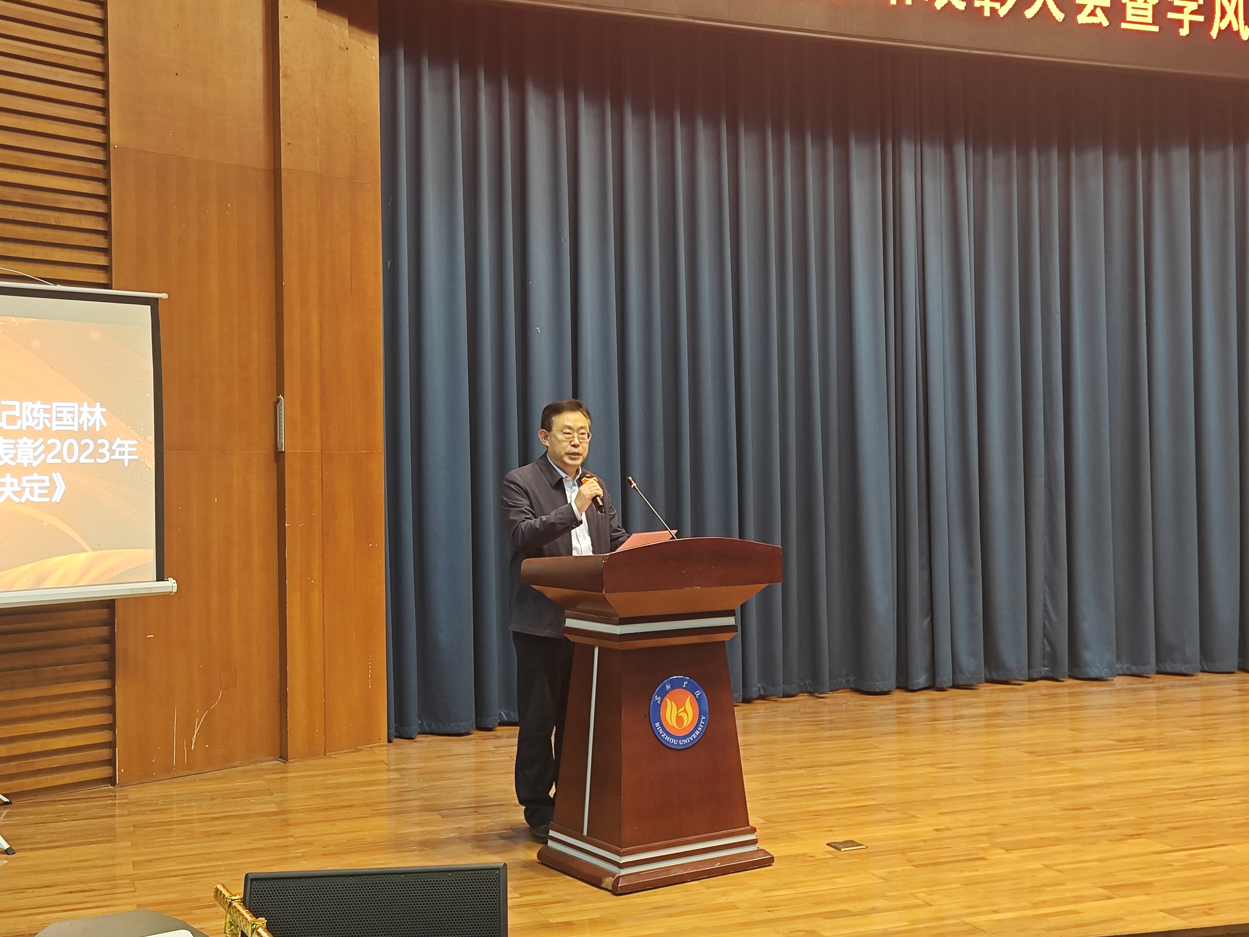 在热烈的掌声中,学校党委委员、纪委书记、监察专员李继峰,教务处处长、机电工程学院院长章健,科研处处长、黄河三角洲生态环境研究中心常务副主任、生物与环境工程学院副院长夏江宝分别为“bat365官方网站 2023 年度工作先进典型”颁奖。学院党总支书记陈国林宣读《bat365官方网站关于表彰2023年度工作先进典型的决定》,授予陈永军等 10 名同志“2023 年度工作先进典型”称号,希望全体教师以先进典型为榜样,积极工作、克服困难、勇于创新,为学院各项事业发展作出新的更大贡献。“优秀教研室主任”“教研标兵”刘伟波作为获奖教师代表发言,他用“机遇”“认同”“努力”三个关键词分享了自己的工作心得和获奖感受,号召全体教师爱岗敬业、坚持不懈、攻坚克难,把不可能的事情做成,把可能的事情做成无限可能。