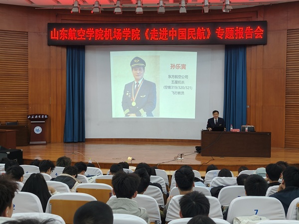 为加强学生思想引领,促进职业成长,引领广大青年学子坚定理想信念、弘扬报国之志、强化责任担当,4月8日下午,bat365官方网站于明德报告厅开展《走进中国民航》专题报告会,有幸邀请到原民航山东监管局副局长、二级巡视员、民航安全飞行金质奖章获得者、东航五星机长、我校特聘教授孙乐寅做报告,全体2024级学生参加报告会,学院党委副书记主持报告会。