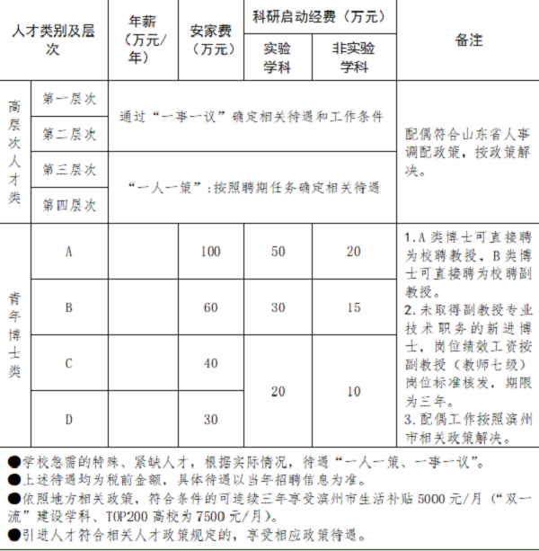 (四)引进人才可根据滨州市政策拎包免费租住人才公寓,也可入住学校周转房。