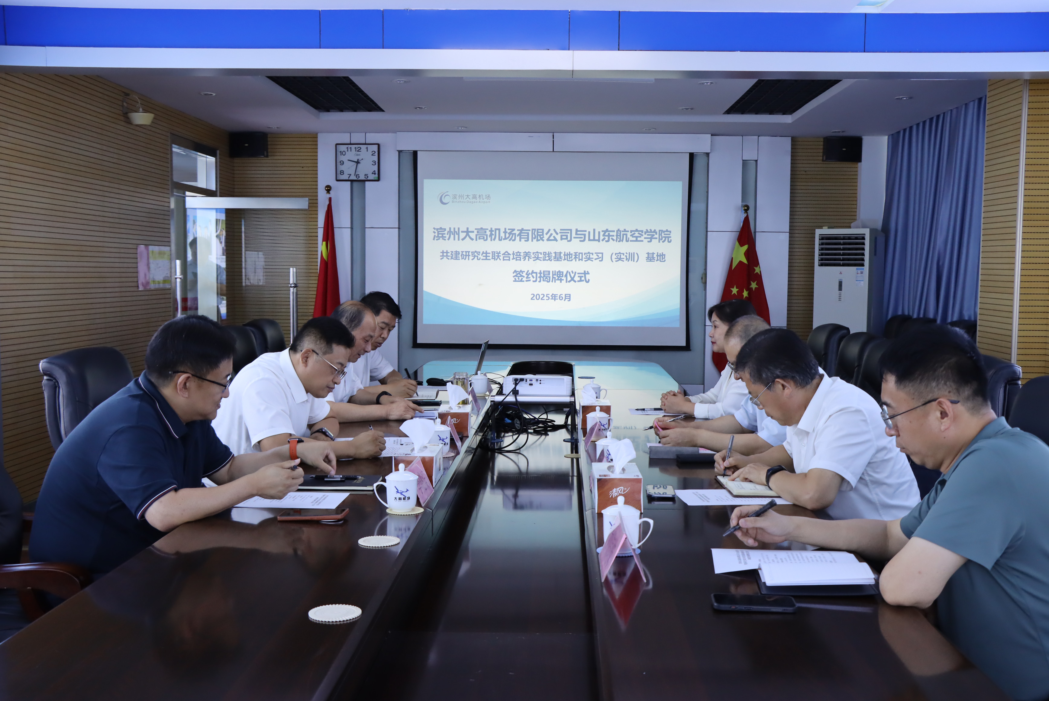 6月27日,bat365官网与滨州大高机场共建研究生联合培养实践基地和实习(实训)基地签约揭牌仪式在滨州大高机场举行。学校党委委员、纪委书记李继峰,滨州大高机场有限公司党委书记、董事长许杰出席仪式并致辞,公司党委副书记、副总经理韩清喜主持签约揭牌仪式。