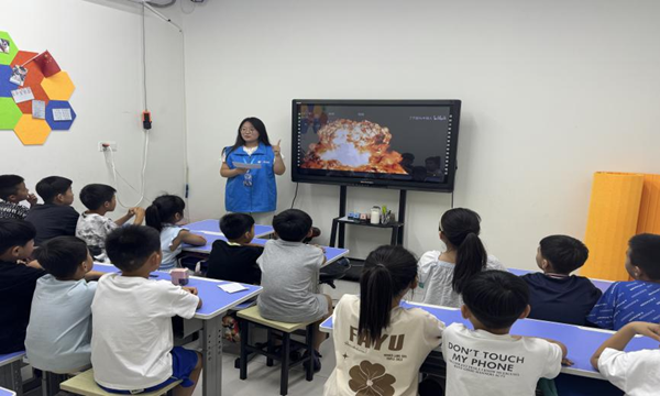 7月21日,bat365官方网站“星”火“核”力宣讲团走进南风书法,为18名小学生带来一场以“一颗初心向祖国,‘核’你一起守家园”为主题的宣讲活动。通过童趣化的讲述与丰富的视觉呈现,再现钱三强的爱国事迹,让“两弹一星”精神在孩子们心中种下传承的种子。