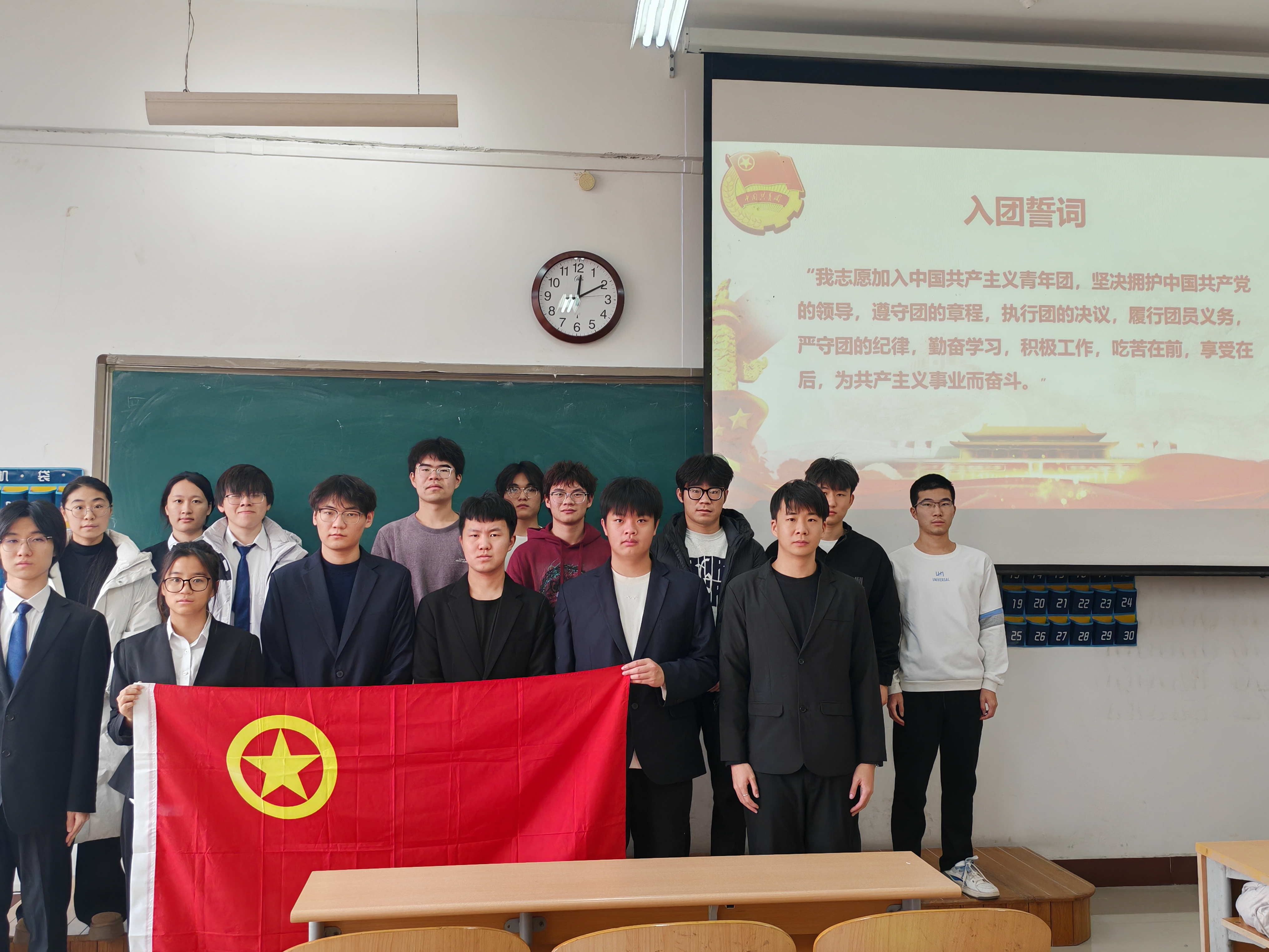 仪式在全体团员齐唱《光荣啊,中国共青团》的激昂旋律中圆满落幕。此次入团仪式的成功举行,不仅为共青团组织注入了新鲜血液,更让青春的信仰在庄重的仪式感中愈发坚定闪亮,激励着全体团员以实际行动践行“请党放心,强国有我”的青春誓言。
