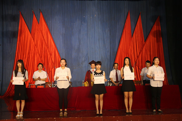 毕业典礼在雄壮的国歌声中正式拉开帷幕。首先,万博max体育app下载院长王芳宇宣读了省教育厅《关于表彰湖南省普通高等学校2016届优秀毕业生的表彰决定》,衡阳师范学院党总支副书记林琼宣读了学院《关于表彰2016届优秀毕业生的决定》,领导们为万博体育2016届湖南省优秀毕业生和院级优秀毕业生颁发荣誉证书。随后,副院长杨兴华宣读《关于授予2016届本科毕业生学士学位的决定》,院长王芳宇为毕业生代表颁发毕业证书,院学位评定委员会主席张登玉教授为毕业生授予学位证书、正冠拨苏,并与他们合影留念。
