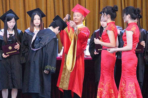 衡阳师范学院副校长聂东明为毕业生拨穗