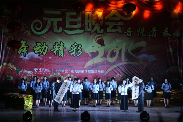 12月29日晚,由共青团万博max体育app下载委员会组织、策划的2015年“舞动精彩,音悦青春”元旦晚会在排演厅隆重举行。学院党总支书记高峰、院长邓双喜、党总支副书记林琼、副院长杨兴华、梁文明等领导应邀出席,与各系师生一起观看了晚会。