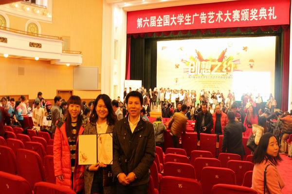 2014年11月16日,第六届全国大学生广告艺术大赛颁奖典礼在全国政协礼堂隆重举办,全国千名嘉宾代表、获奖师生齐聚北京,共襄盛举。万博体育新闻与传播系广告学专业学生戴漫平和刘佳威凭借其创意广告作品《不平凡的你》获得第六届全国大广赛三等奖,拿到了北京颁奖典礼入场劵。戴漫平在指导老师冯林和学院教学办邓珺芳科长的陪同下,赴北京全国政协礼堂参加了颁奖典礼。