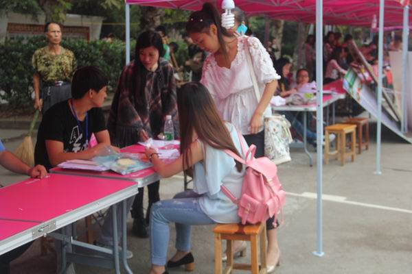 班主任助理在指导学妹办理手续