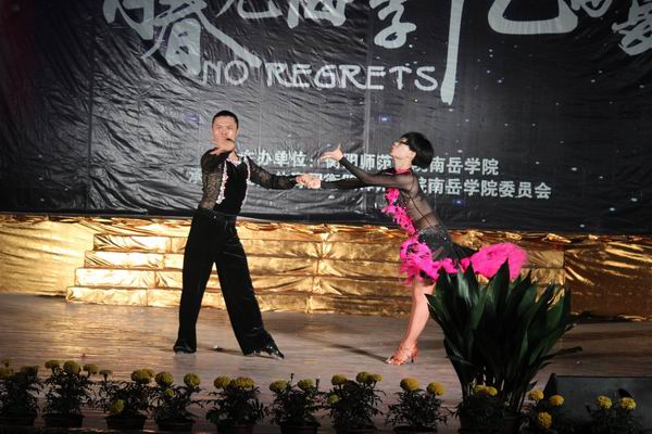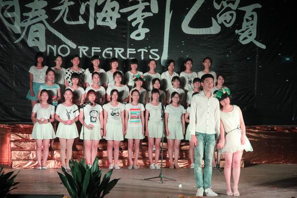 由美术系周宏老师与舞伴带来的拉丁舞掀起全场高潮,一半刚劲有力,一半舒缓轻美,在伴奏《我》的歌声下,鼓励毕业生做最精彩的自我。青春岁月,极致绽放,异彩纷呈的节目让观众应接不暇。小品《青春的选择》以一个女孩想去贵州支教为主线,启示即将离校毕业生理性抉择,坚守梦想。手执红扇,齐地白裙,乘着绚丽舞姿,群舞《雨中花》展现花样少女之风采;器乐表演《民乐联奏》,悠扬婉转,传承泱泱中华民乐之美,洗礼观众心灵;配乐朗诵《木兰诗》,慷慨激昂,让人忆起巾帼英雄木兰之豪情;天空下残留着年少的记忆,音乐系才子周勇原创的笛子独奏《回望 天空》令观众回味无穷;八人化身萤火虫,一席群舞《荧光舞》耀眼夺目,震撼观众视觉。全场压轴节目,外语系上演的合唱《那些花》,句句含情,唱尽毕业者心声,愿他们笑声依旧,生命如美丽的花儿永远绽放。
