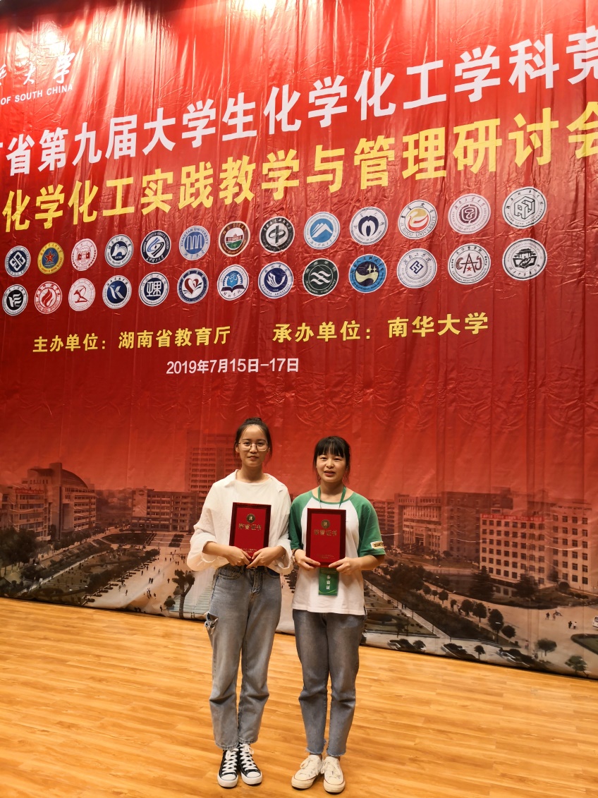 2019年7月15日-17日,湖南省第九届大学生化学化工实验与创新设计竞赛在南华大学落下帷幕。万博体育由陈满生教授、唐斯萍教授指导的2016级化学1班崔泱同学获得无机及分析组二等奖、由李文艺副教授、谷标博士指导的2016级化学1班杨玉芬同学获得有机化学组三等奖。