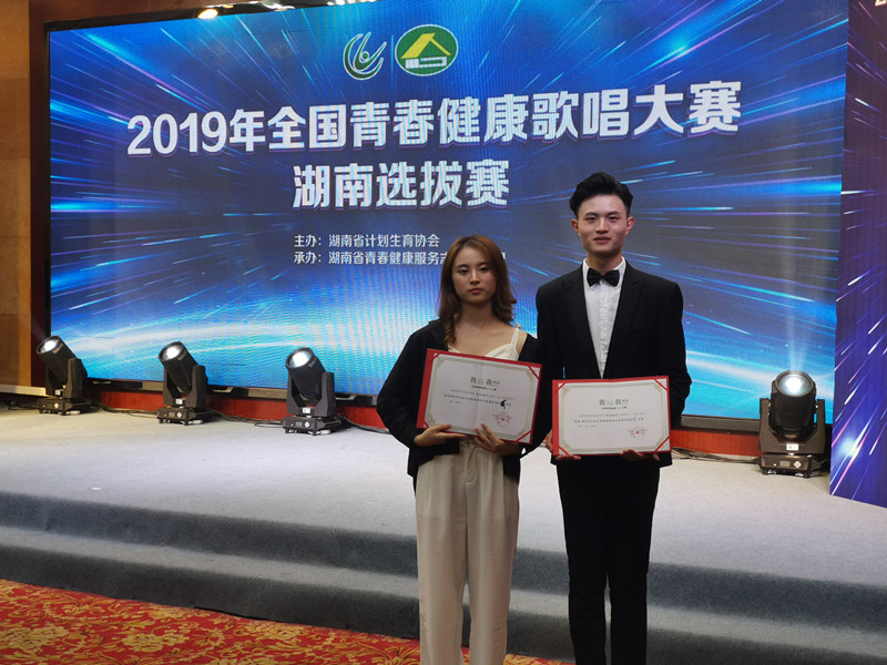 2019年11月1日,由中国计生协举办的全国青春健康歌唱大赛湖南赛区的选拔赛在长沙市西雅三合大酒店落下帷幕。来自全省28所高校的110名选手参与了此次比赛。经过多轮激烈的角逐,万博体育由蒋琛副院长领队的五名选手获一等奖一项,二等奖两项。其中,由蒋琛作词、吴紫君、剪鑫豪演唱的原创歌曲《青春别》获一等奖,杨嘉妮演唱的《我在人民广场吃炸鸡》、余晶、彭远程演唱的《我的爱人,你可听见》获二等奖。按照大赛规定,一等将选手将赴京参加本次全国青春健康歌唱大赛的决赛 。