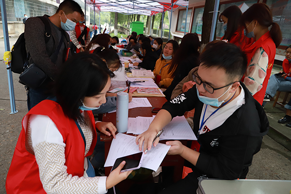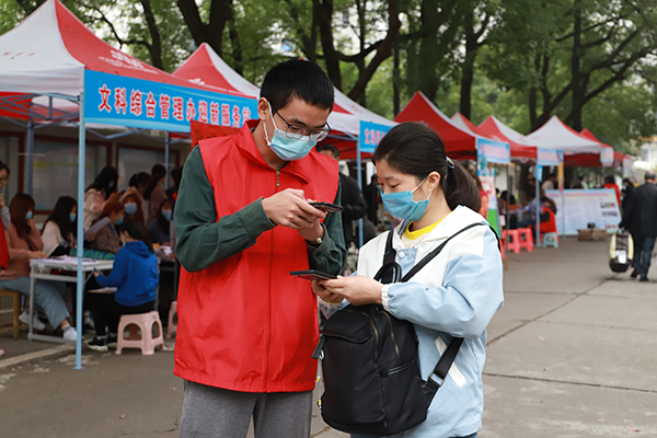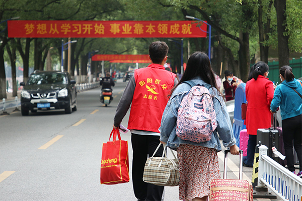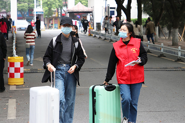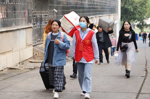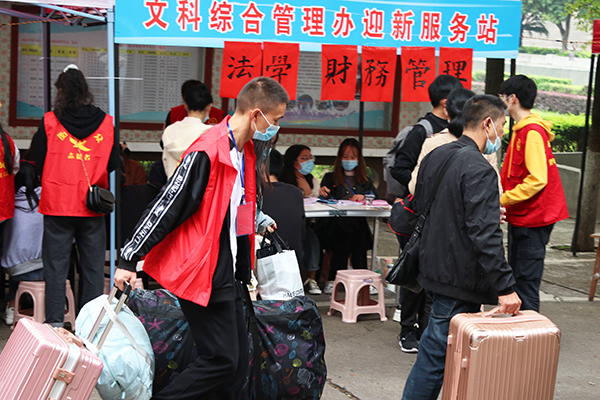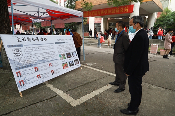 南岳学院党总支书记邹梅山、院长王芳宇现场指导迎新工作