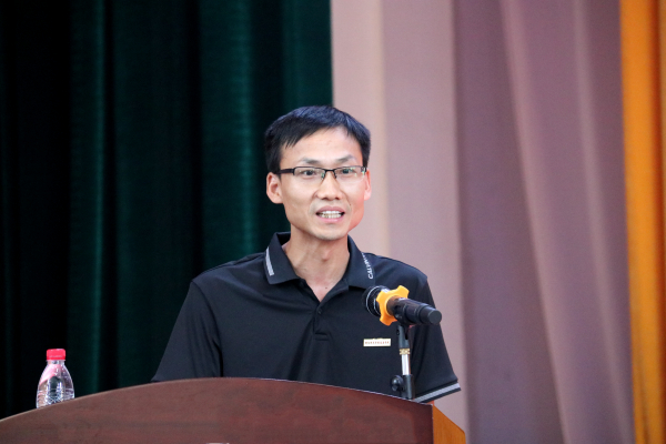 资源环境与旅游管理系杨立国副教授作为教师代表发言。他结合自己教学经验和学习经历,激励全体新生在未来四年当中能认识自己,做到规划自己,走适合自己的路,让青春不留遗憾,成为一名有德行、会学习、能坚强的新时代好青年。