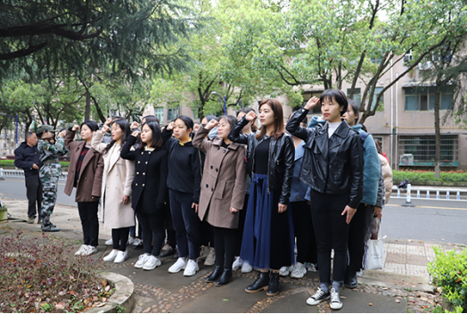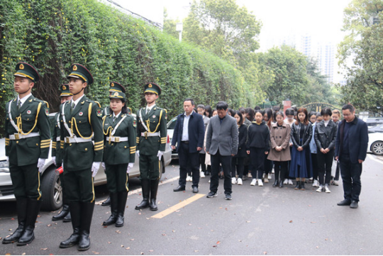 仪式初始,两名南岳学院军事教导队队员,身着戎装迈着正步向蒋先云烈士敬献花篮。在场全体人员肃立,向蒋先云烈士雕像三鞠躬并默哀,表达对革命烈士的无限哀思。随后,周华副书记宣读了2018年下半年新发展党员名单,并带领全体预备党员在烈士纪念雕像前庄严宣誓,表达对党的忠诚和为共产主义事业奋斗终身的决心。