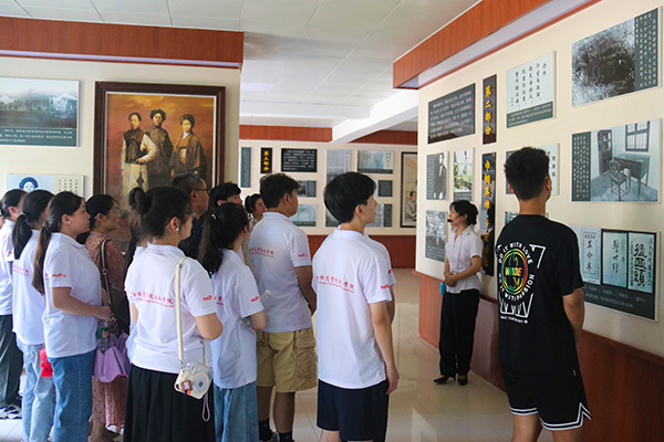 随后,社会实践服务团一行来到唐群英故居,探寻历史足迹,传承红色精神。跟随讲解员的脚步,一件件珍贵的文物、一幅幅生动的图片,我们好像透过历史尘封的岁月进入了战火纷飞的年代,在血雨腥风中,看到一代女将高举男女平等的火把,慨然道:“国之兴亡,匹妇亦应责无旁贷。不是天下兴亡,匹夫有责,而是人皆有责!”在场的志愿者深深被唐群英“一代女魂”的革命豪情所打动。