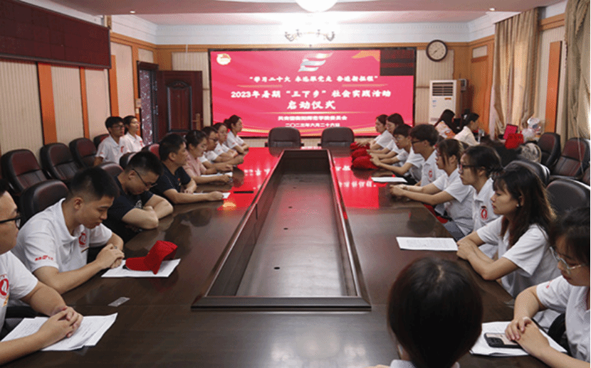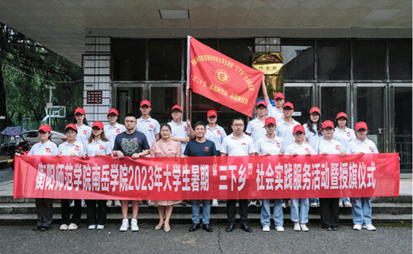 为深入学习宣传贯彻习近平新时代中国特色社会主义思想,全面贯彻落实党的二十大精神,引导和帮助广大青年学生在与现实相结合的“大思政课”中“受教育、长才干、作贡献”。万博max体育app下载组织大学生志愿者成立的暑期社会实践服务团前往衡东县荣桓镇开展2023年暑期“三下乡”社会实践活动。6月26日上午,万博体育在行政楼308会议室隆重举行“三下乡”社会实践活动的启动暨授旗仪式。院党总支副书记凌剑飞、团委书记范建华、指导老师及实践服务团全体成员参加了启动仪式,仪式由院团委书记范建华主持。