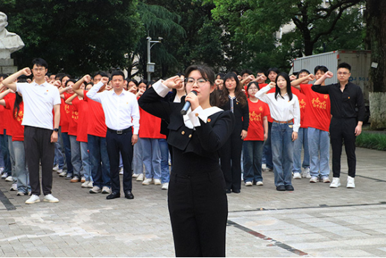 文学院2023级汉语言文学6班李诗雨代表全体新团员发言:要抱有积极的学习热情,以及吃苦耐劳的韧性,勤奋刻苦、坚持不懈,充分发挥共青团员的先进性以及服务性,争做有理想、敢担当、能吃苦、肯奋斗的新时代优秀青年!
