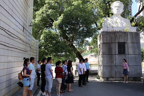 为庆祝中国共产党成立97 周年,深入学习贯彻习近平新时代中国特色社会主义思想和党的十九大精神,提升支部的凝聚力和战斗力,增强支部党员的归属感、使命感和荣誉感,引导激励全体支部党员强化“四个意识”、坚定“四个自信”,践行新担当、展现新作为,6月28日上午,万博体育第二教工党支部组织支部党员开展了“重温党的光辉历史、牢记党的宗旨”主题党日活动。此次活动包括参观校史陈列馆和张秋人、蒋先云烈士雕像,召开习近平新时代中国特色社会主义新思想学习研讨会。