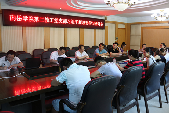 党支部书记周华做总结发言,指出今天的党日活动内容丰富,从现场的学习情况来看,谢海军同志的学习多角度、多层次很深刻,其他党员同志都可以很好的结合当前工作实际。通过对习近平新时代社会主义思想的学习,关键在于立足本职工作,这也是深刻理解习近平思想的最有力的表现。鼓励党员同志做好本职工作,大力推进,把南岳学院工作做得更好。