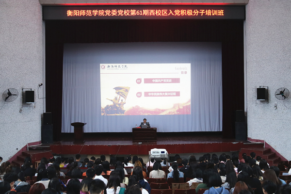 为进一步提高入党积极分子的思想觉悟,端正入党动机,从源头上保证发展党员质量,10月17日至18日,万博体育分党校承办了第61期入党积极分子培训班,来自南岳学院、生命科学与环境学院、化学与材料科学学院的313名入党积极分子参加了培训。