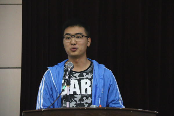 2013级汉语言文学2班肖萌同学作为考研学生代表发言,他感谢学院及各相关院领导对考研学子的关心、指导和帮助,并表示自己和在座的各位考研同学必将不忘初心,以踏实的行动和持之以恒的态度朝着考研目标努力前行。