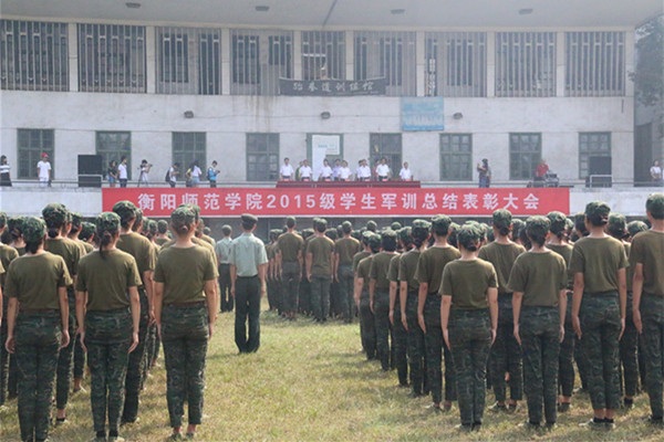 会上,衡阳师范学院副校长聂东明作军训总结报告。他代表学校对本次辛勤承训的教官和为军训工作付出艰辛努力的工作人员表示诚挚的慰问,同时高度肯定了本次军训取得的丰硕成果。他强调,严格的军事训练可以培养青年学生的顽强意志和团结精神,希望全体新生能继续保持在军训中培养起来的良好习惯和优秀作风,把军队的纪律和观念带到今后的学习、生活中,展现当代青年敢于挑战自我、着眼未来的蓬勃朝气。