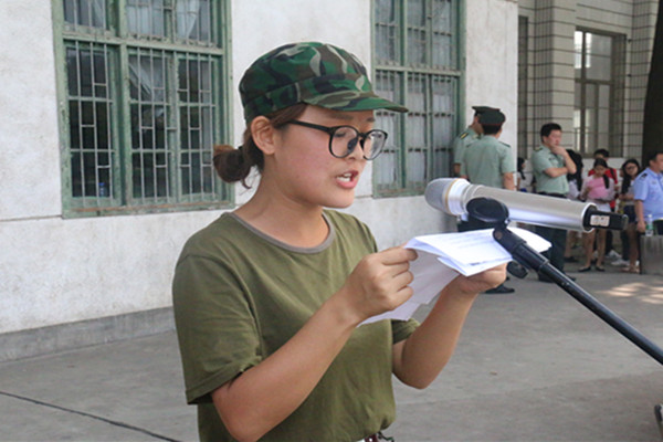 颁奖后,学院教科与生科团总支2015级新生代表徐丹发言。首先她对百忙中抽空前来探望的领导及辛勤工作的教官表示衷心的感谢。她表示,军训是进入大学的第一课,是心灵的历练,是情感的升华,提高了同学们的政治思想水平,激发了大家的爱国热情,同时增强了同学们的身体素质,培养了大家吃苦耐劳、坚忍不拔的精神。