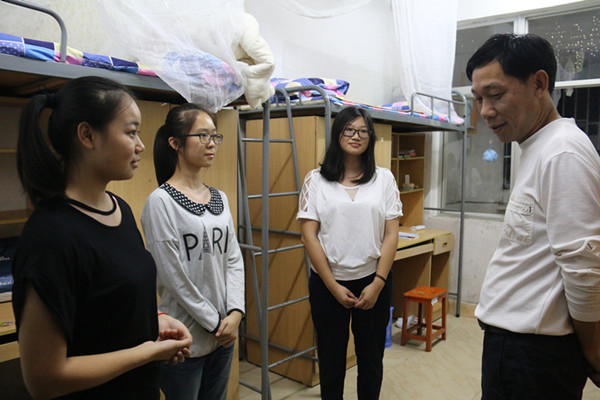 9月13日晚,万博体育党总支书记高峰、院长邓双喜、党总支副书记林琼、副院长杨兴华、学院各科室负责人与全体辅导员老师,共分4组深入走访了2015级全体新生宿舍。