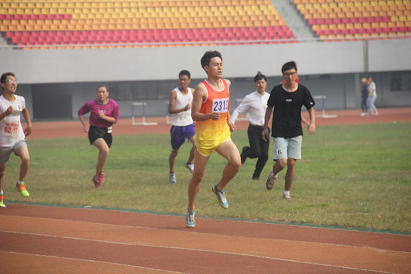 田径场上,硝烟弥漫,学院运动员们就1500米、100米栏、跳远以及跳高等项目展开激烈角逐。参加跑步项目的健儿们,健步如飞,直抵终点;参加投掷项目的精英们,倾尽全力只为夺得佳绩;参加跳跃类项目的运动员们轻捷如烟,奋然一跃的激情带来满场的希望。此外,观众席上的啦啦队用声声呐喊为运动员们送去最有力量的喝彩,具有别样风采的工作人员们默默奉献,穿梭在田径场上为运动员们“护航”,展现了学院学子蓬勃向上、永不言败的战斗豪情。