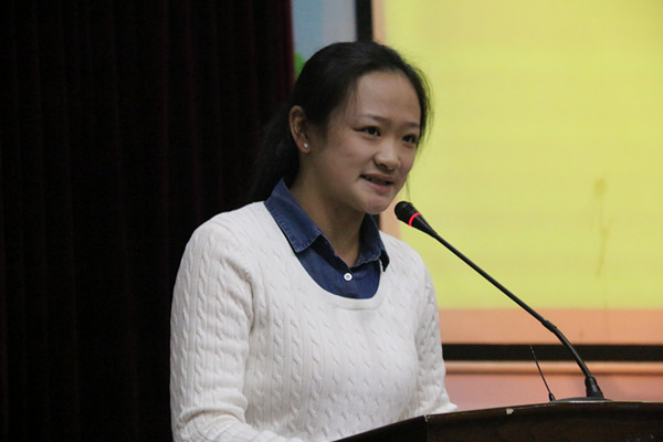 会上,2014级汉语言文学3班胡馨月作为获奖学生代表进行发言。她代表全体运动员对筹备此次运动会付出辛勤努力的工作人员表示衷心的感谢。她提到,“坚持”和“团队合作”是令她感受最深的两个词,更是此次运动会取得成功的关键要素。她表示自身在今后的学习、生活和工作中将继续秉承运动会的锐意进取、迎难而上、不畏挑战的精神,勇往直前。