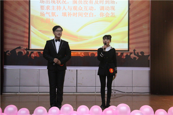 比赛伊始,由主持人首先介绍本次比赛的规则和流程。本次大赛共设置四个环节,即自我介绍、即兴评述、模拟主持和才艺表演。第一环节为选手的自我介绍,此环节是为彰显选手们的独特个性和主持风格。第二环节的即兴评述采取随机抽题的方式,选手们在不同场景下展现了其随机应变的能力。随后,进入了模拟主持的环节,此环节要求选手们“两两搭配”进行自由主持,各选手间的默契程度,结合各不相同的主持风格将现场的气氛推至高潮。比赛的最后一个环节为选手们的才艺表演,无论是新颖独特的单口相声,情感浓厚的配乐朗诵,妙语连珠的绕口令,还是振奋人心的情歌都获得了场下评委和观众的阵阵掌声。
